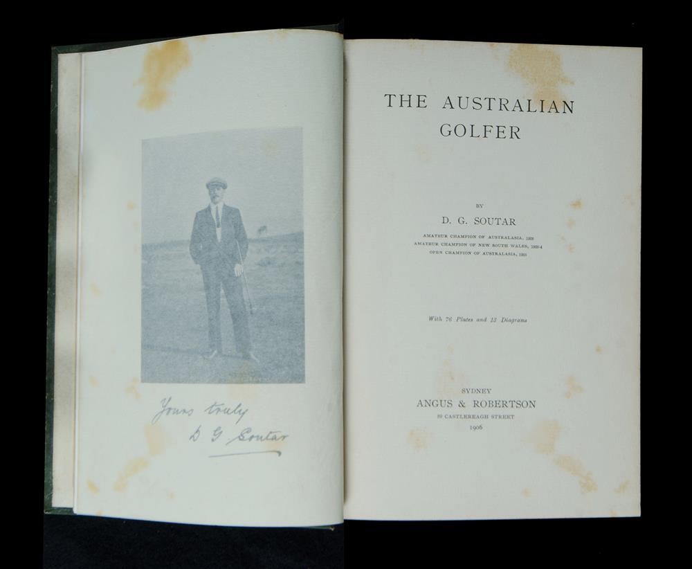BOOK, 'The Australian Golfer,' D G Soutar. Neat library stamps & a label for NSW Amateur Sports Club. Sydney, Angus & Robertson, 1906. Estimate $150-300