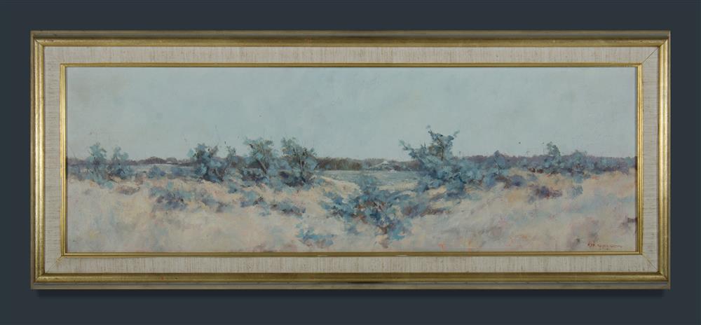 NICOLSON, Max (b.1945) 'Lake King,' 1976. Oil on Board 29x90cm Provenance: The Verlie Just Collection. Estimate $100-200