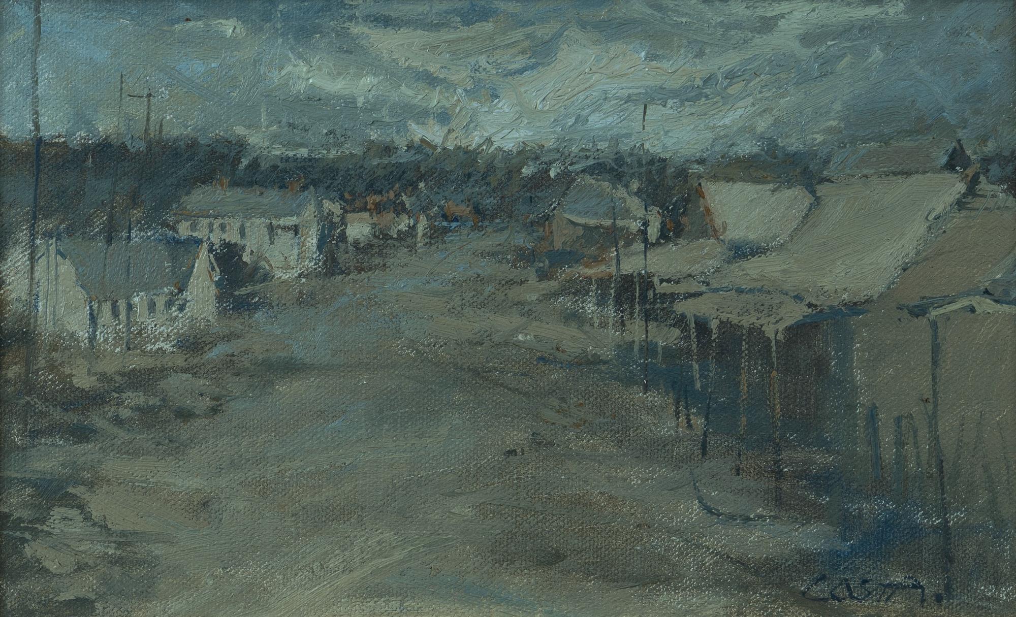 COSTA, Tony (b.1955) (2) 'Overcast, Capertee [NSW]' and 'Grey Skies, Melbourne [VIC],' 1979. Oil on Canvas on Board (2) 14.5x24.5cm (each)Estimate $150-300