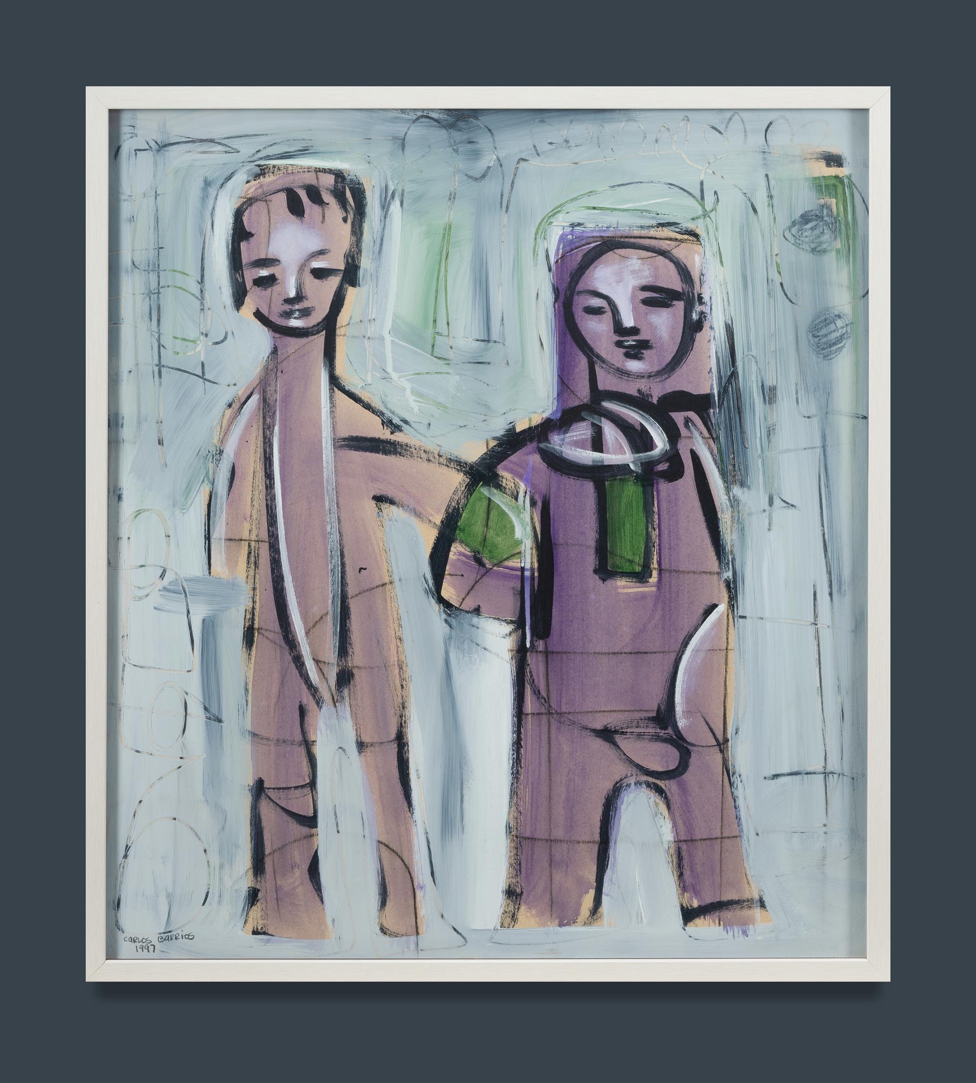 BARRIOS, Carlos (b.1966) Standing Figures, 1997. Mixed Media on Paper 71x64cmEstimate $200-400