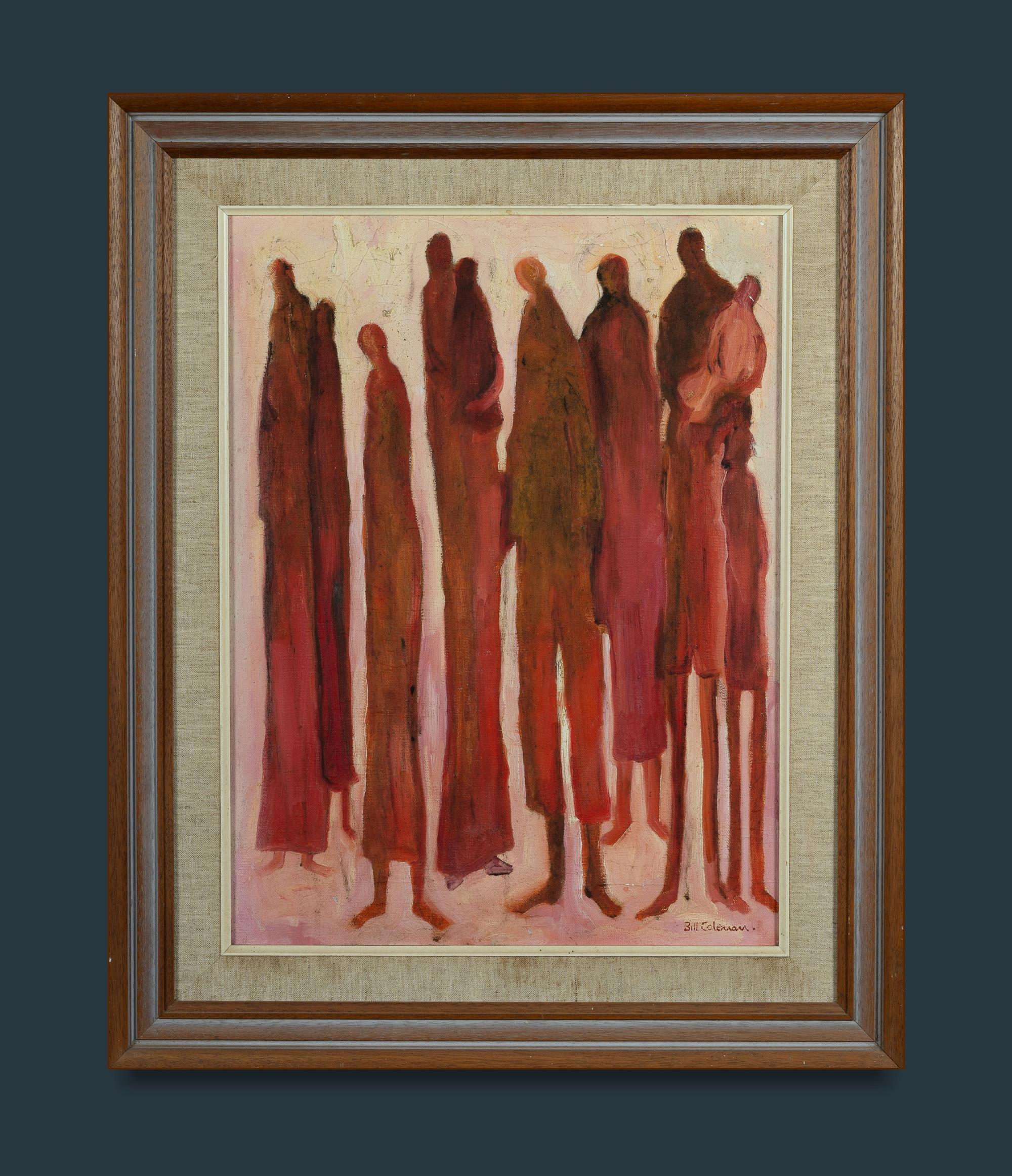 COLEMAN, William (Bill) (1922-1993) 'Waiting Line' Oil on Canvas on Board 57x43cm PROVENANCE: Goodmans, Sydney, 13th May 2002 (lot 30); private collection, Sydney.Estimate $800-1,200