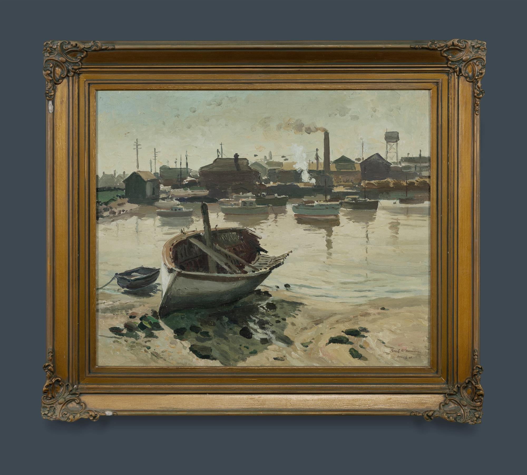 McNAMARA, Frank (1916-1995) Newcastle Harbour, March 1948. Signed lower right. Oil on Canvas on Board 47x57cm PROVENANCE: Davidson Auctions, Sydney, 20th October 2012 (lot 287); Davidson Auctions, Sydney, 24th May 2020 (lot 72)Estimate $300-500