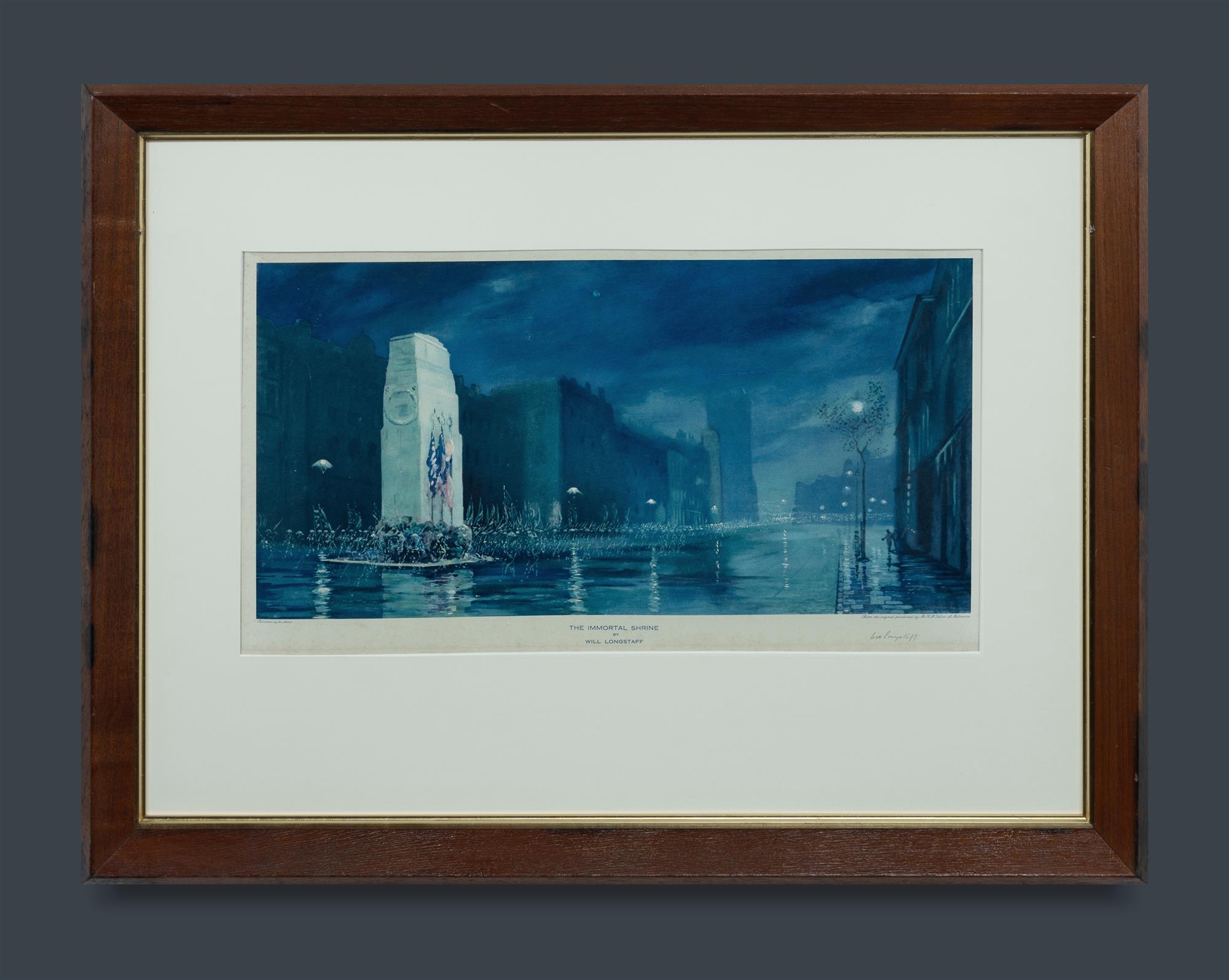 LONGSTAFF, William Frederick (Will) (1879-1953) 'The Immortal Shrine' Signed lower right. Colour Lithograph 28x55.5cm (image) OTHER NOTES: Frame made from wood salvaged from HMAS Sydney (stamp to lower edge of frame)Estimate $250-450