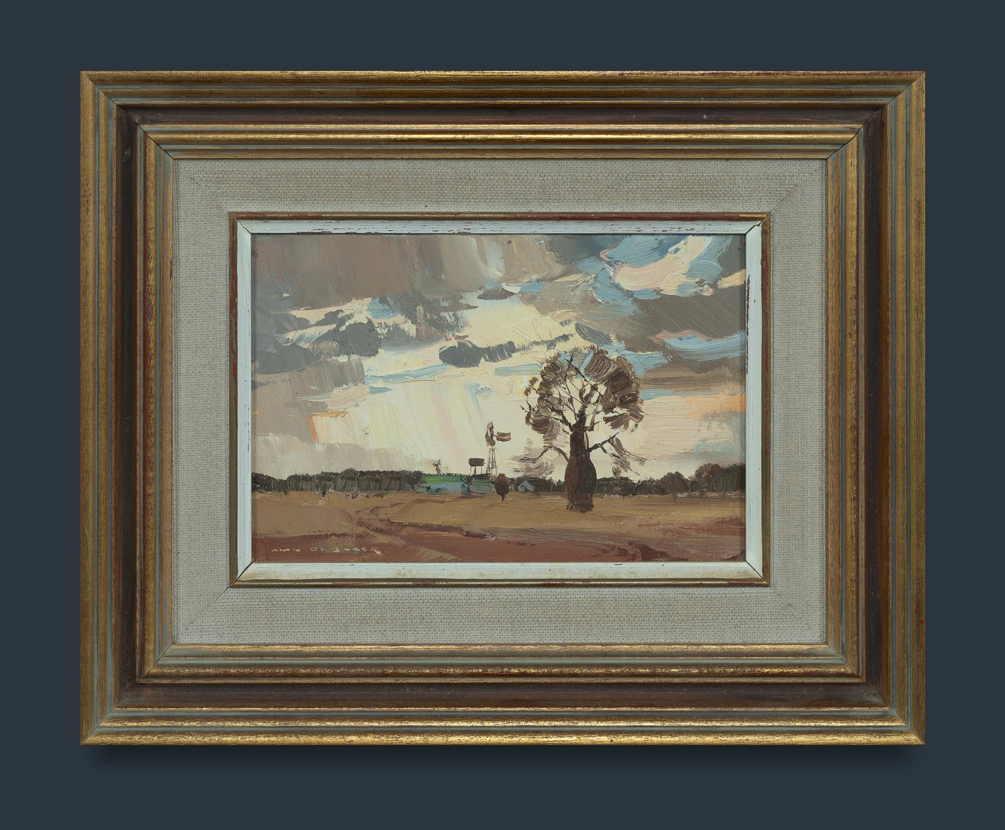 BAKER, Alan Douglas (1914-1987) 'Queensland Bottle Tree (Ravensbourne, Blackall)' Oil on Board 14x21.5cmEstimate $100-200