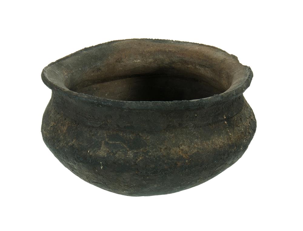 Papua New Guinea 'Fofana' Chest Ornament. Woven fibre, nassa & ovula shell. Bena Bena, Eastern Highlands. Together with, a earthenware cooking pot H28cm W33cm Estimate $40-80
