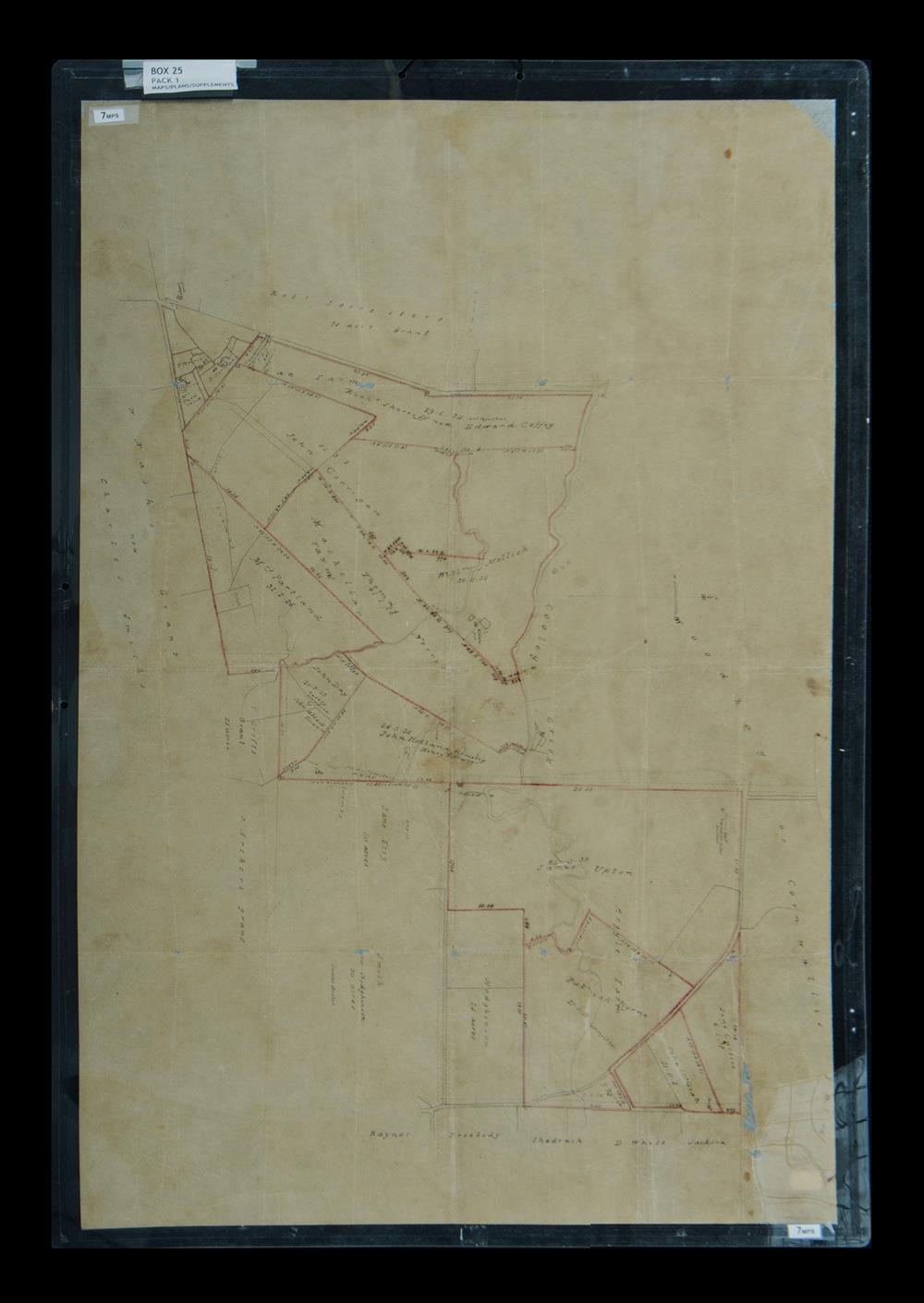 Manuscript Survey Map of Land Grants at Hawkesbury, c1835. Incl auction sale plan of Crown Lands at Richmond (NSW), 1895. Both enclosed in Mylar. (65x52cm) & (75x50cm) Estimate $150-250