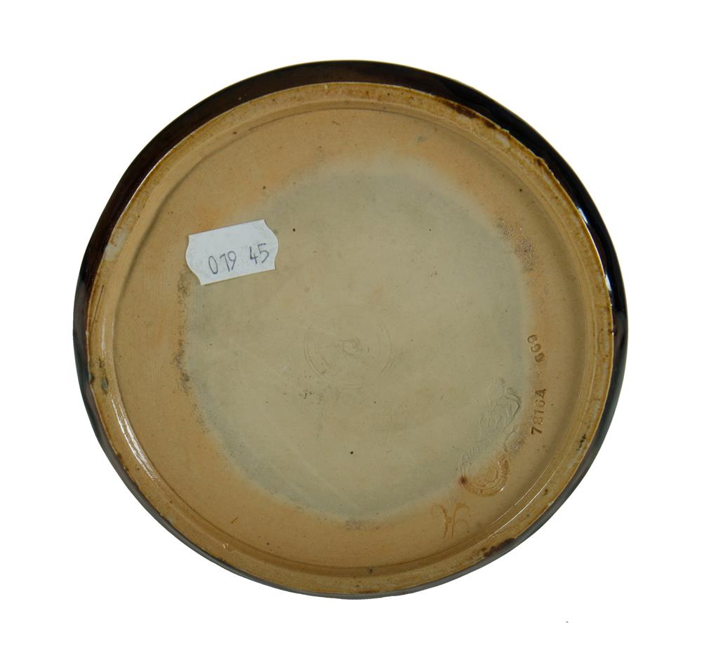 Royal Doulton Stoneware Vase. Of waisted, cylindrical form, with tube line decoration of roses. Incised potter's initials to base. Estimate $50-100