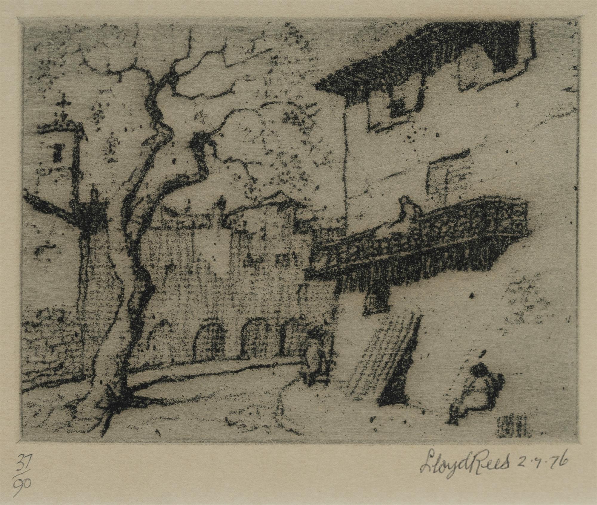REES, Lloyd (1895-1988) (4) 'Plaza Soller, Majorca', 'Tuscan Town', 'Farm House, Majorca,' and 'Spanish Village,' 1976 (all from 'Memories of Europe') Etching 37/90 (4), 10x13cm (plate)Estimate $400-700