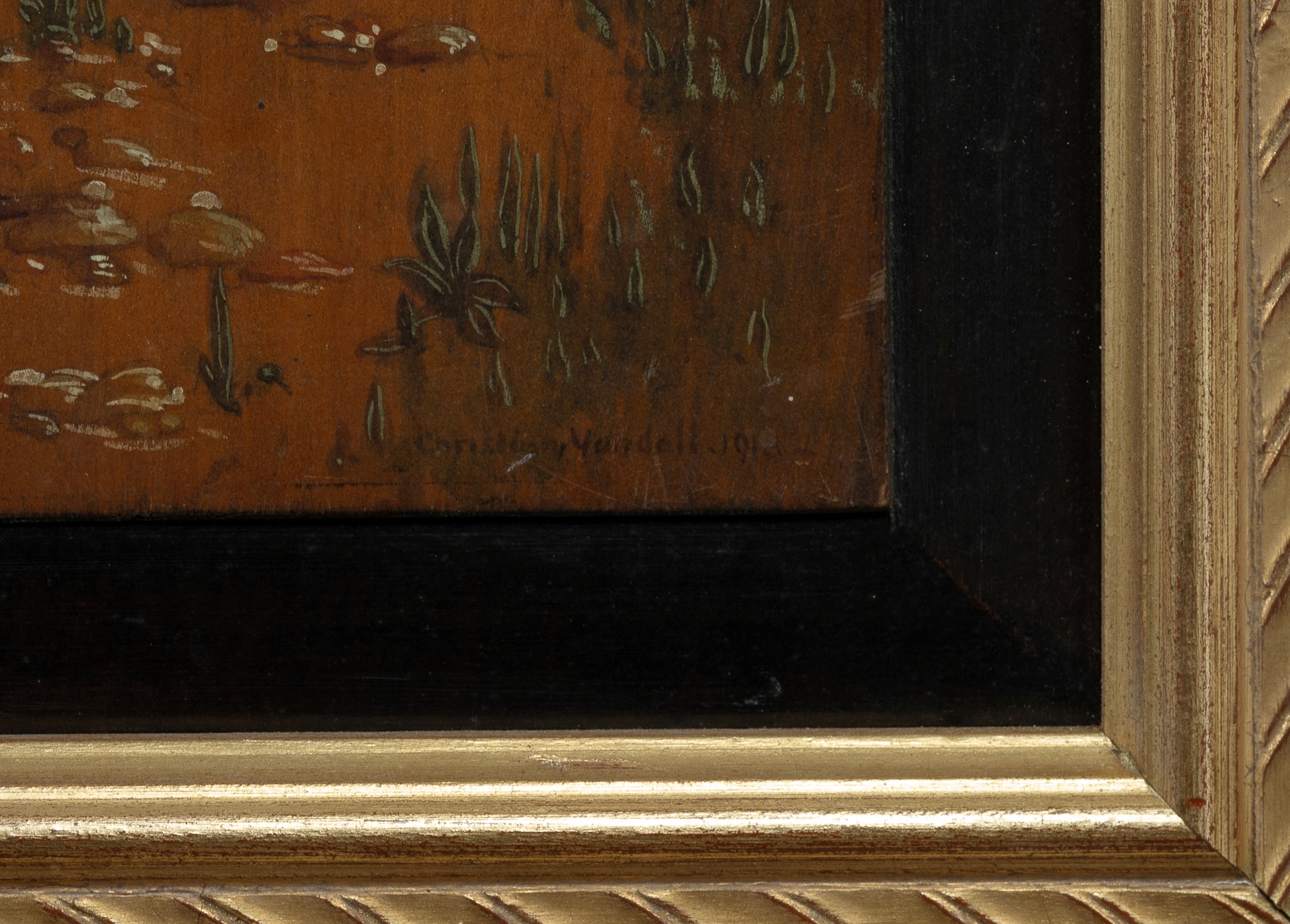 YANDELL, Christian (1875-1956) 'Elaine,' 1918. Signed lower right. Ex Josef Lebovic Gallery, Sydney (label verso) Oil on Board 49.5x21.5cmEstimate $250-450