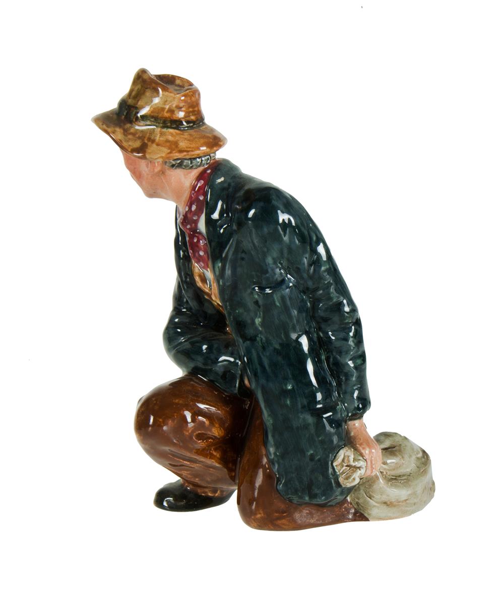 2 Early Royal Doulton Character Figures. 'The Poacher' HN 2043 (H16cm); & 'Owd Willum' HN 2042 (H18cm). Both with impressed signature 'Harradine' Estimate $40-80
