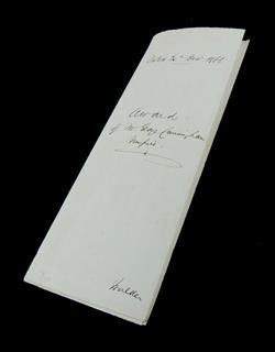 4 Various Hawkesbury New Race Course Ephemera. Broadsheet (poster). re-backed with museum standard Japanese mulberry tissue. (31x46.5cm). To Labourers and Contractors Tenders are required by 'The Improvement Committee' for the erection of paling fence round the race course. All tenders to John Thomas Smith, Hon. Sec. Fitzroy Hotel Windsor. B. Isaacs, Printer,1866. Enclosed in Mylar; quasi legal document, dated the 22nd day of Dec, 1866. Four pages of manuscript on two conjoined leaves. Submission of matters in dispute to Arbitration. A dispute between the contractors for the paling fence & The Improvement Committee of the Hawkesbury New Race Course to be resolved by arbitration & an umpire. Enclosed in Mylar; true copy of an original agreement between John Ridge and Isaac Hopkins & the Hawkesbury New Race Course to erect a paling fence around the course, 3rd August, 1866; & award of Mr George Cunningham Umpire in the dispute between Ridge & Hopkins & The Improvement Committee (Hawkesbury New Race Course), 24th Day of December, 1866. Estimate $120-240