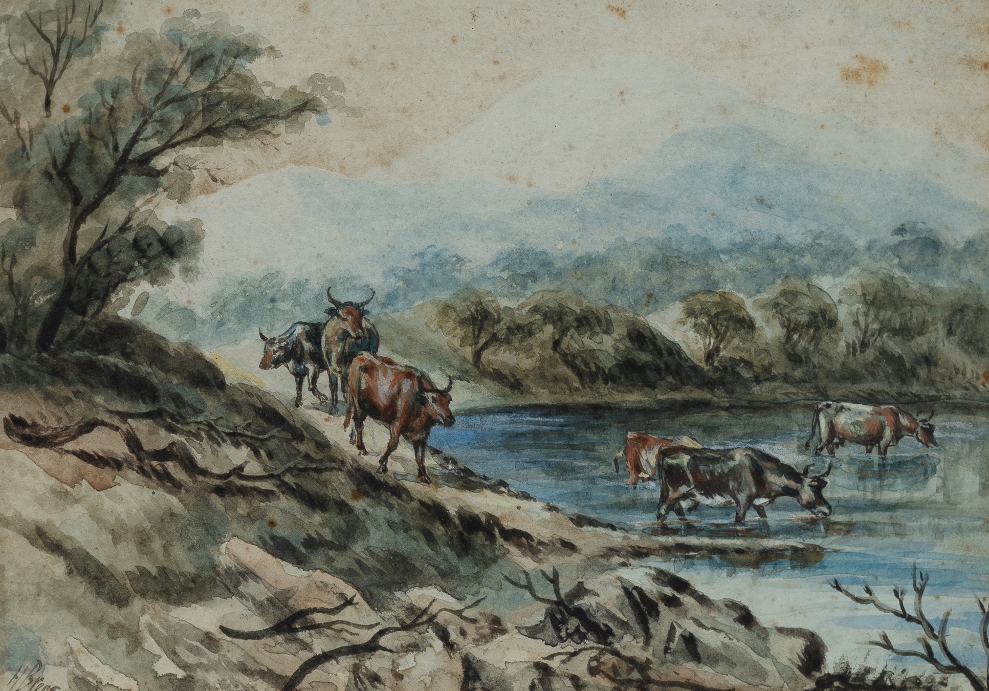 BREES, Harold (1837-1904) 'The Waterhole' W/Clr 17.5x25cm