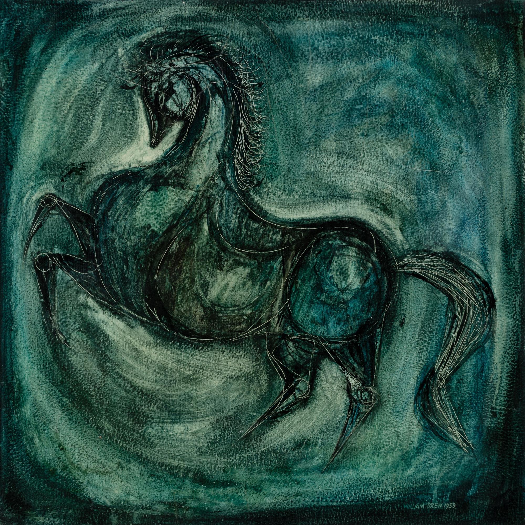 DREW, William (1928-1983) Rearing Horse, 1959. Signed and dated lower right. Mixed Media on Board 45x45cmEstimate $200-400