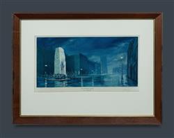 LONGSTAFF, William Frederick (Will) (1879-1953) 'The Immortal Shrine' Signed lower right. Colour Lithograph 28x55.5cm (image) OTHER NOTES: Frame made from wood salvaged from HMAS Sydney (stamp to lower edge of frame)Estimate $250-450