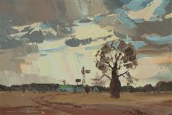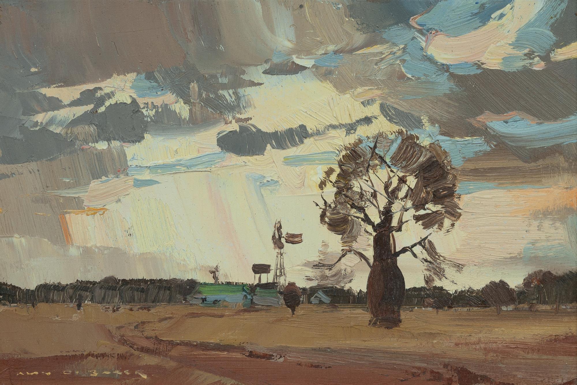 BAKER, Alan Douglas (1914-1987) 'Queensland Bottle Tree (Ravensbourne, Blackall)' Oil on Board 14x21.5cmEstimate $100-200