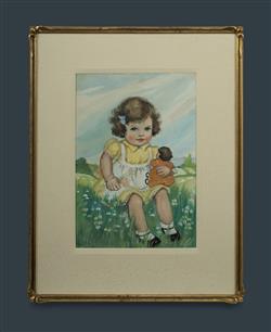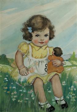 PATERSON, Elizabeth Deans (Betty) (1894-1970) Little Girl with Doll and Flowers, c.1920s. Signed in pencil lower left. W/Clr 51x35.5cm
