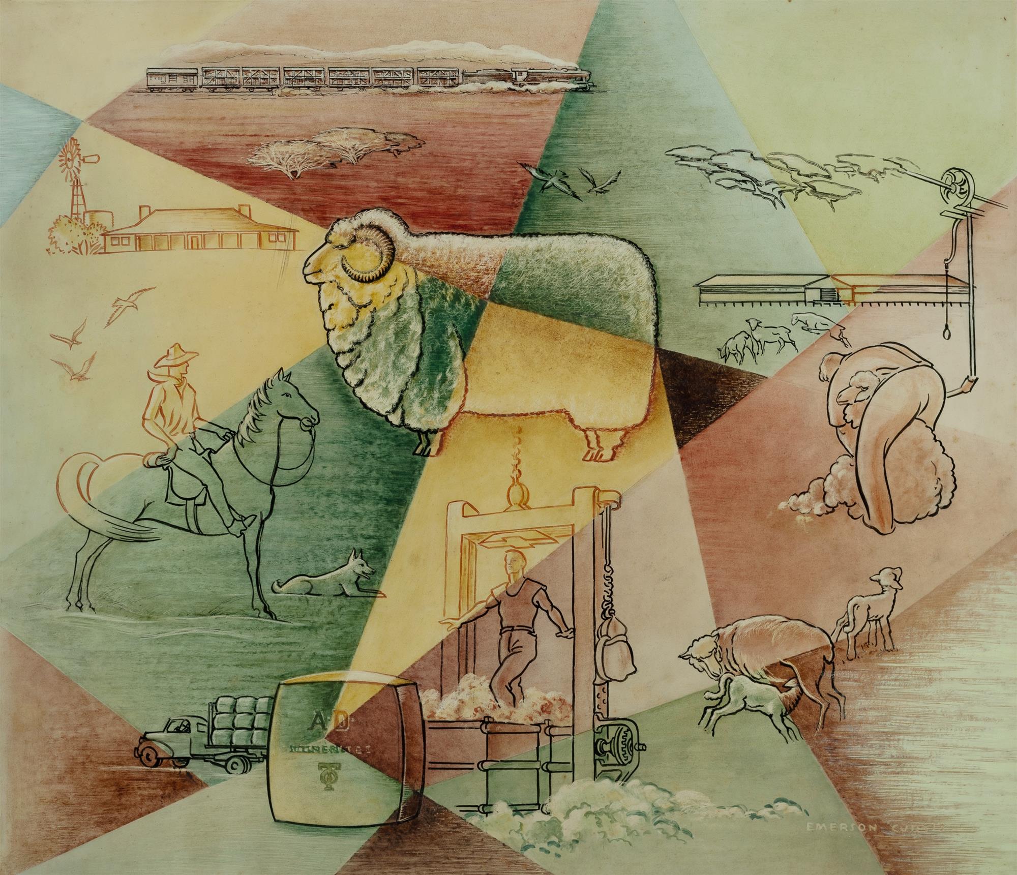CURTIS, Robert Emerson (1898-1996) Shearing Station Woolloomooloo Gallery, Sydney, label verso. Lithograph 69x79cmEstimate $100-200